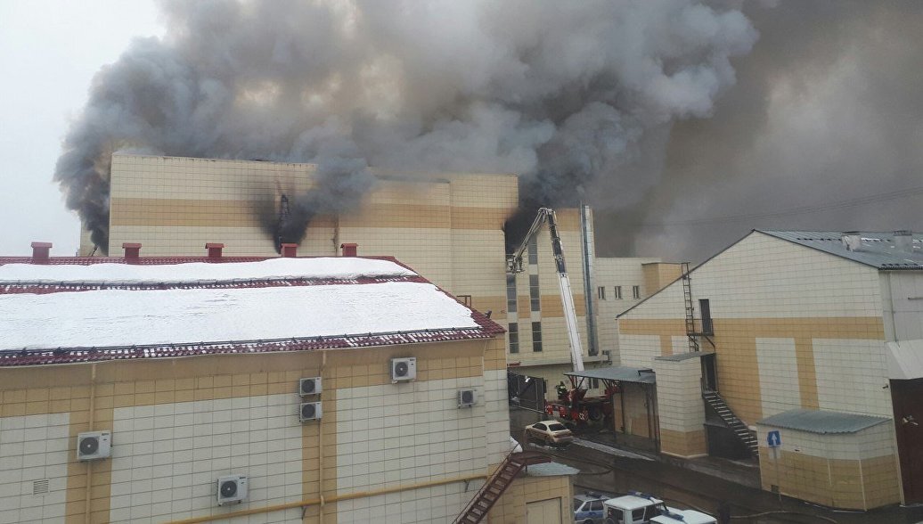 СМИ сообщают, что пожар начался в одном из кинозалов, там уже обнаружены тела четырёх погибших детей. Некоторым посетителям пришлось выбираться из центра прямо через окна.
