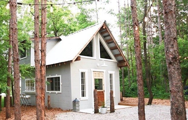 Этот стильный и нарядный домик, со всех сторон окруженный молодыми деревцами, продумывали для сдачи в аренду. Но иногда здесь отдыхает и сама хозяйка, и, как вы, наверное, уже догадались, именно она отвечала за оформление дома. Его площадь чуть больше 60 квадратов, и когда хозяева размышляли о покупке недвижимости, примерно такие габариты и были в планах у пары. Да и много ли нужно для домика на выходные? Впрочем, благодаря обилию окон и высокому своду крыши, визуально он кажется больше. Кстати, стильных треугольных окон могло и не быть: хозяйка поначалу долго отказывалась от такого конструктивного решения. А потом присмотрелась и поняла, что именно благодаря окнам на крыше в доме такой прозрачный, обволакивающий естественный свет. В итоге старые окна, которые были установлены изначально, сменили большие и современные, повторяющие остроконечную форму крыши. В оформлении интерьера белый цвет решено было выбрать фоновым, локально добавить сочных синих и зеленых акцентов