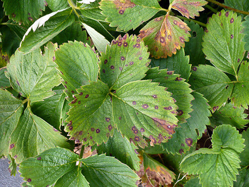 Признаками такой болезни являются точкообразные пурпурные и буроватые пятнышки, которые очень быстро распространяются по всем листьям землянички. Скорее всего, такой недуг может появиться именно на старых плантациях, где накопилось огромное количество возбудителей болезней. Во избежание заболеваний стоит принимать необходимые меры и после того, как растаял последний снег.