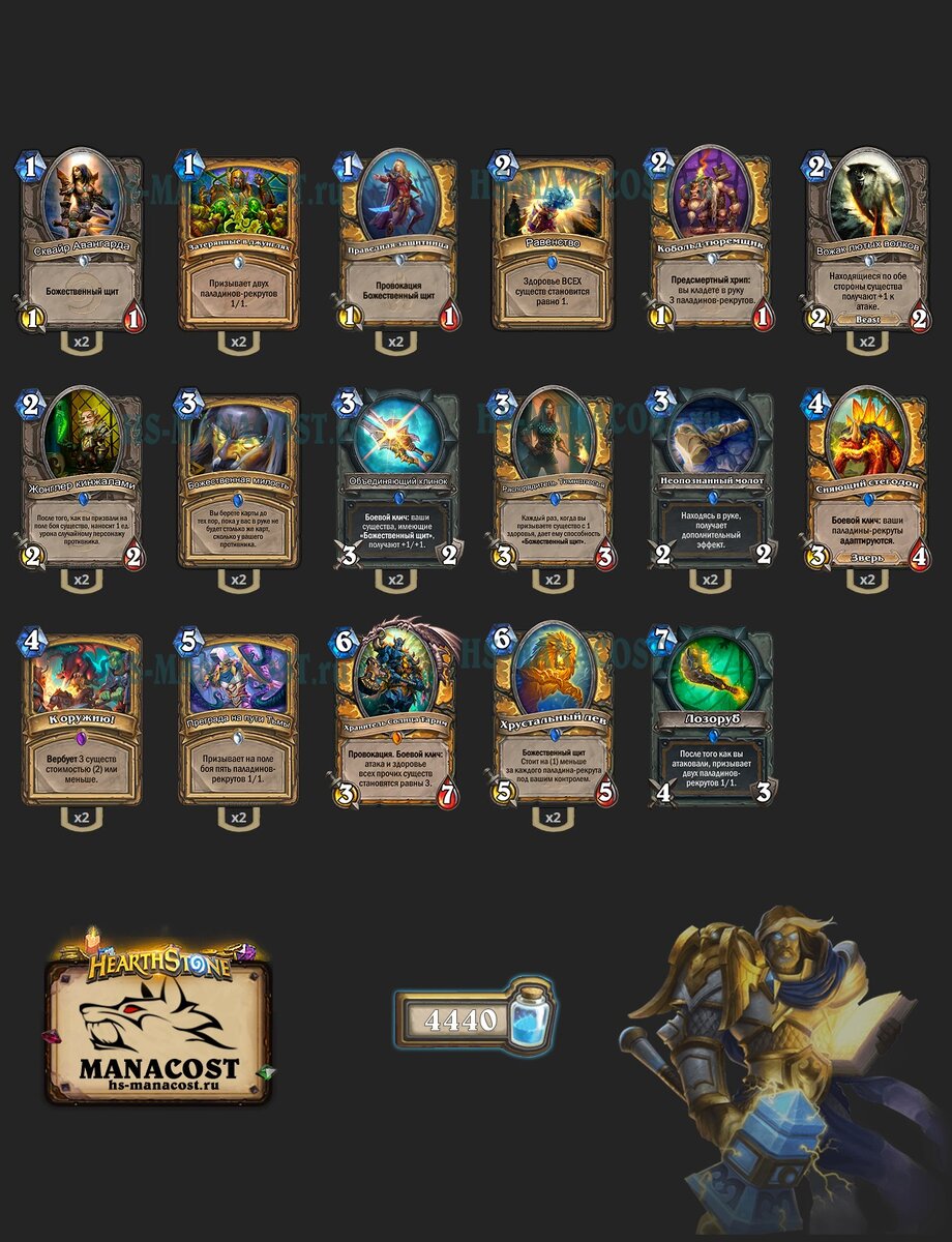 Топ 5 Колод для взятия легенды. Мета Кобольды и Катакомбы. Февраль 2018 года. Топ 1 колода - Паладин на рекрутах и Паладин на мурлоках. Очень сильная колода за счет контроля стола, баффа и спама мелкими существами. Паладин на рекрутах Топ 2 колода - Куболок. Мощная колода определяющая мету после Паладинов. Он показывает отличные результаты против практически всех колод. Эта единственная колода способная остановить Паладина на рекрутах и Паладина на мурлоках, за счет провокаций и АОЕ эффектов. Топ 3 колода - Биг жрец. Следующая мощная колода пользующаяся огромной популярностью у игроков. И не мудрено, у этой колоды есть мощные связки, такие как: "Барнс + Ишарадж; Обсидиановая статуя + Вечное служение + Сущность тени + Оберег: малый алмаз", много зачисток и мощные провокаторы, такие как Король лич и Обсидиановая статуя. Топ 4 колода - Биг Спелл маг. Это колода тоже является популярной у игроков. За счет разнообразия карт в колоде. Большое количество ресурсов, чтобы выиграть на средн