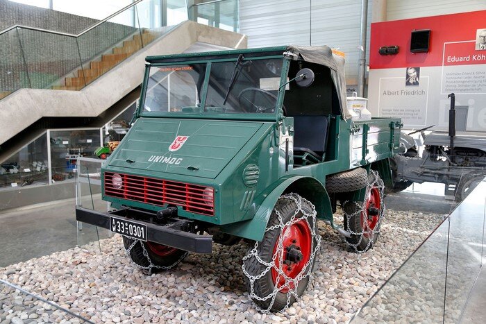 Первая концепция «универсального транспортного средства для сельского хозяйства», разработанная инженером Daimler-Benz AG Альбертом Фридрихом, представляла собой скорее трактор, чем автомобиль. Просто, надежно, практично – четыре колеса одинакового размера, портальные мосты и огромные цилиндрические пружины, обеспечивающие большие ходы подвески. И, наверное, трактором Unimog и стал бы, если бы не встреча инженера Фридриха с дизайнером Генрихом Ресслером. Именно благодаря ему первые шесть прототипов, построенные к 1948 году, имели не только выдающуюся проходимость, но и весьма привлекательный внешний вид грузовичка-трудяги.