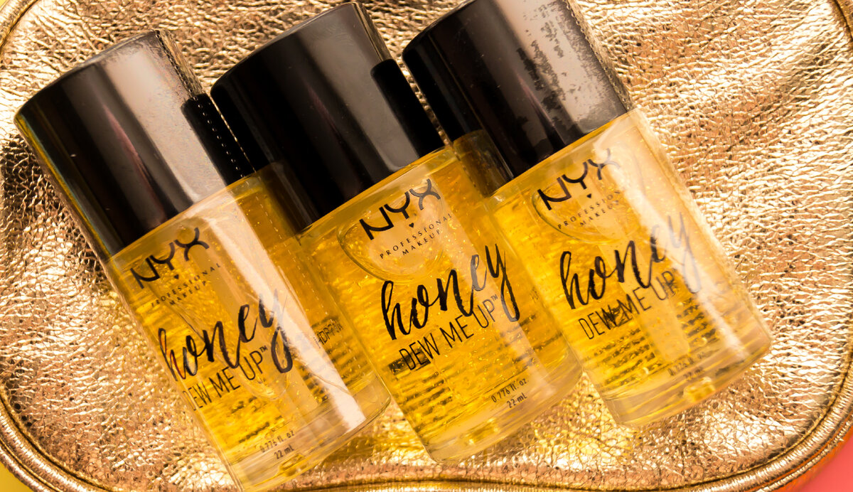 NYX Honey Dew Me Up Primer не просто какой-то там праймер под макияж, это почти легенда! Когда праймер временно вывели из продажи, чтоб переделать дизайн (как оказалось потом) у многих девушек была истерика. Я вот взяла 3 штучки про запас, как только объявили скидки, вдруг снова будут перебои с поставками. Что же такого особенного в этом праймере для макияжа лица? Стеклянная прозрачная, упаковка. Внутри лопатка соединенная с крышечкой. База гелевая, но очень специфическая, похожа на мед. Тянется такими же карамельными легкими ниточками. Пахнет медом. Производитель заверяет, что база обогащена медом, светоотражающими частичками и коллагеном. Цена 1100 на официальном сайте. А главная особенность в интенсивных уходовых свойствах этой базы под макияж! Она самостоятельно увлажняет и разглаживает кожу, делая нанесение тона в разы более комфортным, а макияж стойким. Заглаживает и запечатывает шелушения, ощутимо увлажняет сухие места. Конечно, полностью уход одним праймером заменить нель