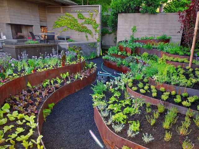 Для посадки пряных трав можно сделать спиральную грядку, напоминающую по своему устройству рокарий ил