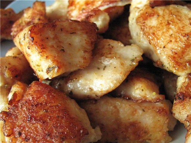 Хотите утереть нос Копперфильду? Купить куриную грудку, а гостям на стол подать жареную свинину? Тогда Вам сюда! Приготовьте и убедитесь, что вкус куриного мяса исчезает, а появляется вкус изумительного свиного карбоната! Волшебство, одним словом! Ингредиенты: Куриные грудки ("белое мясо") - 1 кг. Лимон - 1 шт. Сода пищевая - 1 ч.л. Крахмал - 1 ч.л. Соль - по вкусу Мука (для панировки) Масло растительное (для жарки) Приготовление: Куриные грудки нарезать небольшими кусочками ( кубиками по 3-4 сантиметра), добавить соль, соду, сок лимона и крахмал. Перемешать и оставить на 20 минут. Хорошо разогреть сковороду с растительным маслом. Обвалять кусочки курицы в муке и жарить на сильном огне 5-7 минут. Вуаля! Мы получили сочный и вкусный "свиной карбонат"! Приятного аппетита! ЖИТЬ НАДО ВКУСНО! Спасибо за лайк и подписку! Добро пожаловать на канал "Мужчина на кухне"!