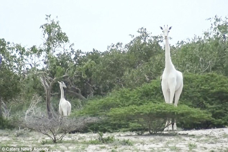 Животные альбиносы. Эти создания обречены природой на постоянную борьбу за жизнь, зачастую проигрывая эту битву уже в первые годы своей жизни. Тем удивительнее их встречать в дикой природе. За последние несколько дней сразу две видеокамеры засняли животных альбиносов в естественной среде. Так, вчера в американском штате Аризона в объективы камеры попал белый ягуар. Хищника засняла автоматическая камера, которая расположена в горах хребта Чирикахуа. Причем, этот ягуар является той же самой уникальной особью, которую запечатлели фотокамеры почти год назад в районе хребта Дос-Кабезас. А в августе месяце в кенийском заповеднике впервые увидели белых жирафов. Видео самки жирафа и детеныша попало в камеры месяц назад, однако журналисты обратили на него внимание лишь на днях. Самое удивительное в этом природном явлении то, что животные не являются альбиносами, а страдают от генетического заболевания – лейцизма – которое не дает лишь клеткам кожи вырабатывать естественный пигмент. П С. Отм