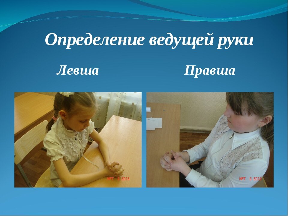 Первыми выявляют, какая рука, ведущая это родители, наблюдая какой рукой выполняет деятельность ребенок. Однако, нужно иметь ввиду, что у многих детей до определенного возраста бывает достаточно трудно определить какая рука ведущая, используя игровой способ наблюдения.