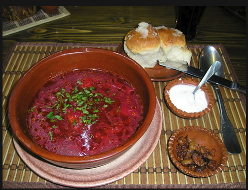 Борщ - как много вкусовых ощущений дает это великолепное блюдо. Мама уходила на работу в ночную смену. Мы оставались с сестрой одни, спали за голландкой (так называется небольшая сложенная из кирпича печка). Просыпались от идущего от голландки тепла и обалденного аромата борща, сваренного в печке в чугунке. Ну что, слюнки уже потекли..? Сейчас печки нет, и чугунков тоже. Но борщ тоже получается отменный! Что же нужно для борща: 1. Говядина или свинина на сахарной косточке хороший кусок - около 1 кг 2. Капуста - 400 грамм 3. Лук - 2 луковицы 4. Морковь - 1 штука 5. Свекла - 1 крупная или 2 мелкие 6. Помидоры 2 штуки или томатная паста 7. Болгарский перец - можно обойтись без него, но с ним борщ будет ароматнее 8. Картофель - 3-4 штуки 9. Зелень и приправы (какие вам нравятся) Мясо заливаем холодной водой в 3-х литровой кастрюле, ставим на огонь. Как закипит, снимаем пенку, солим 1/2 с горкой столовой ложки, и далее варим на оч