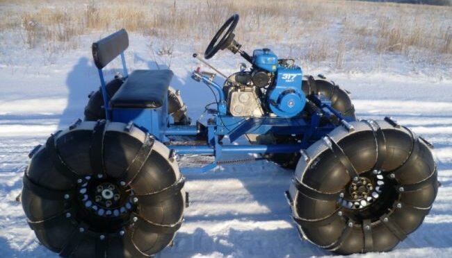 Сделать полноценный вездеход из мотоблока вполне реально, по крайней мере у Кулибина из сельской глубинки это прекрасно получилось, а понадобилось всего лишь старые запчасти от Отечественного автомобилей и двигатель от мотоблока. Рама сварена из водопроводной трубы, камеры ГАЗ с бандажом из резины и пожарного рукава. Рулевое управление ВАЗ. Вездеход из мотоблока так же оснащен фарами для поездок в темное время суток. Можно смело отправляться в любую даль, на рыбалку или охоту, а придет время весенне-полевых работ -то вездеход можно переоборудовать в трактор, или же перекинуть двигатель снова на мотоблок. Чертеж. Узлы и агрегаты самодельного вездехода из мотоблока. Как видите невозможное-возможно) Подписывайтесь на обновления и ставьте пальчик вверх) Всем добра)