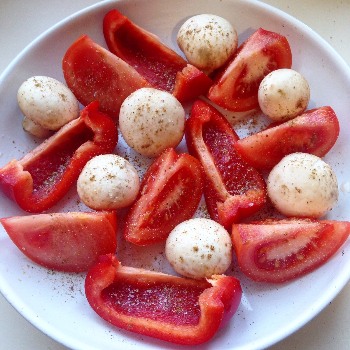 В пост принято воздерживаться от некоторых видов пищи и меню в это время становится очень однообразным. Но все можно изменить! При этом не обязательно тратить много денег. Можно уложиться в 100 рублей и при этом разнообразить свой рацион вкусными запеченными овощами. Какие овощи нужно купить: ● Шампиньоны – 200 г – 40 рублей. ● Перец болгарский – 200 г – 40 рублей. ● Помидор – 1 шт. – 19 рублей. ● Соль, приправы по вкусу. Итого 99 рублей, может чуть меньше или больше, в зависимости от веса продуктов. К указанным овощам легко добавляется картофель, тыква и любые другие. Готовим: 1. Перец и помидор нарезаем крупно. 2. Шампиньоны оставляем целиком, если мелкие. Если крупные, то можно поделить на две или четыре части. 3. Распределяем овощи по форме и немного солим. 4. Добавляем специи по вкусу, можно посыпать любимыми травами и отправляем запекаться в разогретую духовку на 15-20 минут. 5. Вкуснейшее блюдо готово! По желанию можно украсить зеленью или нарезать салат из свежих овоще