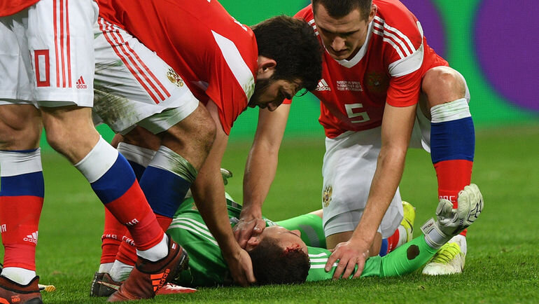 Сегодня объявили о том против Франции не сыграет Далер Кузяев. За последнии дни сборная потеряла многих. Кто еще с травмами. ВРАТАРИ В ноябре вратарь Зенита Андрей Лунёв Травмирован в матче с Испанией в январе его прооперировали из за проблемы с мениском. В Марте Лунёв опять травмирован , ушиб стопы ,на разминке перед игрой с "Ростовом". ЗАЩИТНИКИ В Январе игрок Спартака Георгий Джикия разрывает крестообразную связку в товарищеской игре "Спартака" и "Шанхай СИПГ". В настоящие время лечится , врачи считают его шанс выступить на чемпионате мира 50/50 . В Феврале игрок ЦСКА Виктор Васин повредил крестообразные связки в игре против "Црвены Звезды". Врачи считают что играть на чемпионате он врятли сможет. В марте так же игрок ЦСКА Марио Фернандес травмировал и повредил мышцы правого бедра в игре чемпионата России против "Урала". Срок выздоравления около 6 недель. Защитник "Рубина" Руслан Камболов повредил бедро во время тренировки сборной России и не смог закончить трениров