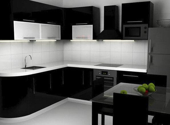 Как ни странно, но черный цвет всегда считался традиционным именно для кухонь. Этот цвет акцентирует внимание и особенно хорошо выглядит на кухнях. Но вполне понятно, что черная кухня подойдет не для всякого интерьера, и не всякая хозяйка захочет иметь кухню, окрашенную в черные цвета. Кроме того, при таком цветовом оформлении комната должна получать много цвета – естественного или искусственного. Потрясающие результаты в дизайне кухонного помещения дает разбавление черных цветов различными светлыми элементами. К примеру, можно сделать светлой столешницу, либо вставки из теплого натурального дерева или ярких цветных элементов. Это сделает кухню более уютной. Кухни черного цвета редко можно купить уже готовыми, потому что спрос на них в силу разных причин не велик, но их можно заказать. Производители изготавливают кухни черного цвета из высококачественных материалов – из акрилового пластика или стекла. С классическим черным цветом прекрасно сочетается хром. Есл