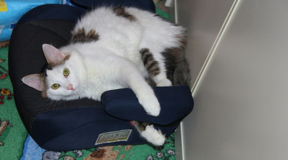 Мы так и зовем его – наш сладкий пион Адам. Когда берем его на руки, такое ощущение, что кот растворился у нас в руках. А эта белоснежная мягкая шерсть и кучеряшки на ушках… и взгляд. Взгляд – принца!
