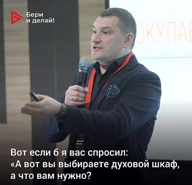 Недавно в интернете появилось видео с отрывком из выступления Евгения Вяткина, известного бизнес-тренера, сооснователя группы компаний Pro Retail, который рассказывал, как он выбирал духовой шкаф в салоне бытовой техники «Домотехника». И хоть посыл материала был, в первую очередь, о бизнес-приемах, которые удачно использовал менеджер при продаже хорошего духового шкафа, для потребителя этот ролик полезен не только в качестве примера, как работает настоящий профессионал, который помогает выбрать действительно подходящую модель, но и как руководство к действию, как правильно подходить к выбору духовки для себя, для жизни, для комфортного использования, если профессиональный консультант из примера вам не попадется. Если у вас спросят, по всем законам классической консультационной продажи, оценивающей потребности: что вы ищете, когда выбираете духовой шкаф? Скорее всего, последуют ответы: микроволновку в духовке, двойной гриль, пиролиз, — при условии, что вы уже почитали в интернете, чт