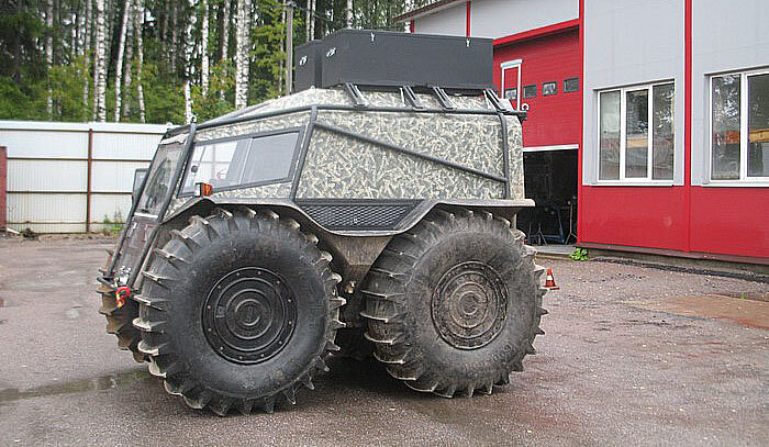 Казалось бы - легендарный снегоболотоход ШЕРП со своими уникальными возможностями в доработке не нуждается. Но, как оказалось, даже этому вездеходу нужен тюнинг. Первая задача, поставленная заказчиком - ШЕРП будет использоваться в самых труднодоступных местах на берегу Баренцевого моря и должен быть оборудован каркасом, с установленным на нем легким багажником и ящиками для оборудования. При этом каркас должен иметь крепления для транспортировки вертолетом. Так же требовался интегрированный в силовую конструкцию квадрат для фаркопа/буксировочной проушины. В итоге был изготовлен прочный каркас из трубы, который полностью защищает кузов вездехода от контакта с деревьями, обезопасит экипаж в случае переворота, и дополнительно усиливает кузов ШЕРПа. На верх был изготовлен аллюминиевый быстросьемный багажник на талрепах и легкие алюминиевые ящики. Силовая конструкция багажника завязана на дополнительные нижние трубы и раму вездехода, превращаясь в пространственный сверхпрочный каркас. Для з