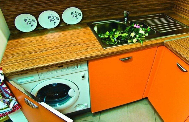 Для облегчения быта появляется все больше техники, которую нужно где-то размещать, а в малогабаритных квартирах это создает проблемы. Есть несколько удачных вариантов, где найти место для стиралки на кухне, в ванной комнате, маленьком туалете и прихожей. Кухня На кухне часто размещают машинку для стирки, так как есть подводка водопроводной и канализационной системы. Поэтому ее устанавливают ближе к мойке. Хотя габариты кухни побольше ванной, но поставить агрегат нужно так, чтобы он занимал мало места. Оптимальный вариант – под столешницей. При правильной установке машинка не будет вибрировать. Если цвет стиралки не отвечает общей цветовой гамме, ее можно перекрасить в нужный цвет или прикрыть дверцей, изготовленной из материала гарнитура, который приобретают на строительном рынке. Ванная комната Это помещение не отличается простором, поэтому приходится проявить фантазию, чтобы вместе с мойкой и ванной разместить еще агрегат для стирки. Если позволяют габариты, его можно поставить п