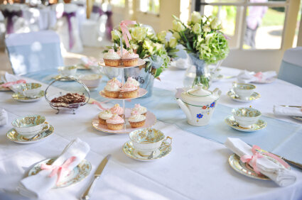 Для подготовки сервировки стола к чаепитию нужно подобрать скатерть, ее расцветка должна гармонировать с цветом чайного сервиза. Посередине стола размещают вазу с цветами, блюдо с тортом или вазочки с вареньем, котфетами или фруктами. Перед каждым гостем ставится десертная тарелка, на нее выкладывается цветная салфетка. Чайник необходимо поставить рядом с хозяйкой дома, чтобы она могла заниматься разлитием чая.