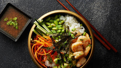 Суши-рисовые чаши с креветками