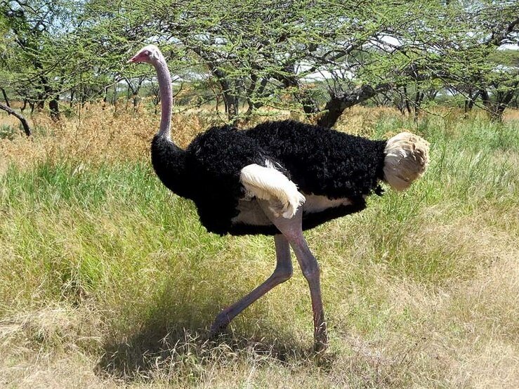 Внешний вид страуса довольно необычен. Рост этой "птички" достигает 3 метров, а вес - 160 килограмм! Тело вытянутое, массивное, покрыто перьями яркого черного цвета у самцов страуса. Такой цвет служит для привлечения самок.