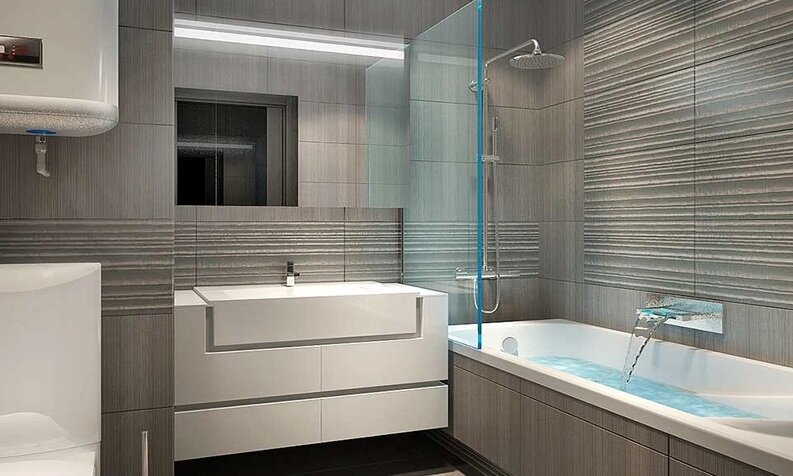 Выбор цвета для ванной комнаты – одна из основных задач при ремонте. Есть много вариантов оттенков для этого помещения. Если использование палитры с контрастным насыщенным цветом вызывает у Вас какие-либо сомнения, предпочтительней выбирать что-то нейтральное. Наиболее подходящим в этом случае считается серый цвет, тем более что такая цветовая гамма символизирует высокий стиль и хороший вкус. Однако отделка интерьера исключительно в серой гамме может привести к появлению ощущения некой унылости. Чтобы избежать такого эффекта, необходимо придерживаться определенных правил. Нужно учесть, что множество холодных серых тонов вряд ли придаст помещению много комфорта и уюта. По этой причине нужно уравновесить гамму элементами с теплым оттенком. Если в ванной есть окно, серый цвет можно даже ничем не разбавлять. В естественном освещении и при условии установки сантехники белого цвета, такая комната всегда будет смотреться элегантно. Общий вид помещения в основном зависит от используемых