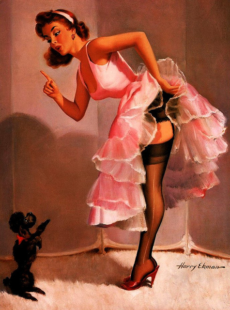 Изображения в стиле Pin-Up вначале интенсивно использовались в рекламе различных продуктов и товаров народного потребления. В начале ХХ века американские мастера таких компаний, как Соса-Соla и Lucky Strikе первыми придумали совершенно новый способ сбыта своей продукции – делать цветные копии с фривольных фотографий актрис или манекенщиц или же просто покрывать красками уже готовые фотографии с добавлением своего логотипа. Собственно, так и было положено начало новому направлению в искусстве под названием Pin-Up. Главное же в Pin-Up – это показывать «самое, самое» лишь с легким намеком, осторожно балансируя на грани приличий: никакой откровенности, все должно быть красиво, мило и лицеприятно. На что-то большое в 30-40-е годы был установлен негласный запрет. В те времена Америка не потерпела бы открытого разврата, но мягкие намеки на разность полов встречались с полным одобрением. Девушки в развевающихся платьях, обнажающих ноги почти до середины бедер, смеющиеся лукавые красавицы, п