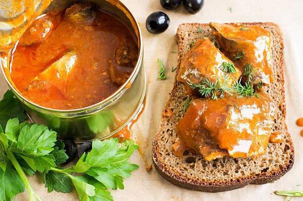 Рыбные консервы в томате в домашних условиях готовятся в такой последовательности: -Килограмм рыбы (окунь, судак, берш или можно использовать мирную рыбу, но я предпочитаю хищников) избавляемся от головы, внутренностей и хвоста(можно так же снять чешую, но опять же по желанию), моется и нарезается кусочками по 4 см. -Морковь и лук (по 300 г) измельчаются кубиками. Морковь можно натереть на крупной терке. -Делаем пюре из помидор(500г) с помощью мясорубки или блендера. Вместо томата можно взять томатную пасту (около 3 ст. ложек), но тогда ее необходимо довести до нужной консистенции водой, долив до объема 500 мл. -В кастрюлю с толстыми стенками или в чашу мультиварки выложить слоями сначала томат, затем рыбу, овощи и специи (50 мл уксуса, 100 мл подсолнечного масла, 25 г соли и вдвое больше сахара). Время тушения блюда под крышкой на плите составляет 3 часа, в мультиварке (режим "Тушение") - 4 часа, в скороварке - 1,5 часа. Рыба должна буквально томиться в томатном соусе, тогда она