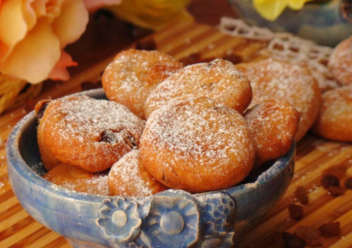 Нам понадобится: Мука - 2 стакана Молоко - 1 стакан Мёд - 3 ст л Сахар - 1 ст л Изюм - 0,5 чашки Соль - щепотка Масло - для жарки Сахарная пудра - для посыпки Начинаем готовить: Нагрейте молоко и растворите в нём мёд. Просейте муку. Добавьте к ней сахар, соль и изюм. Влейте молоко. Замесите тесто руками. Должно получится достаточно густое. При необходимости добавьте немного муки. Сформируйте шарики размером с грецкий орех. Слегка сплющите. Разогрейте масло на сковороде. Обжарьте с обеих сторон до золотистого цвета. Отфильтруйте лишний жир на бумажном полотенце. Когда печенье слегка остынет, посыпьте его сахарной пудрой. Приятного аппетита!