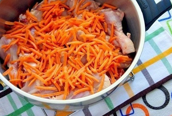 Очистите ножки от кожи и лишнего жира. Перец (морковь) нарежьте соломкой или небольшими кубиками.