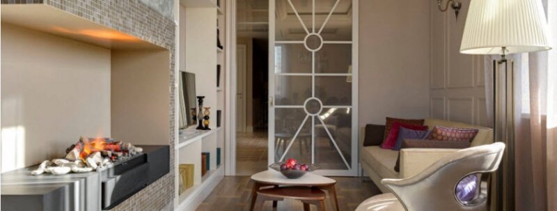 В российских гостиных использование камина почти всегда сопровождается размещением еще одного, не менее важного предмета интерьера – телевизора. Как правило, видео-зона располагается над камином (для экономии пространства) или в непосредственной близости от него. А уже напротив камина располагается ансамбль из мягкой мебели – диван, кресла, возможно пуфы или оттоманка.