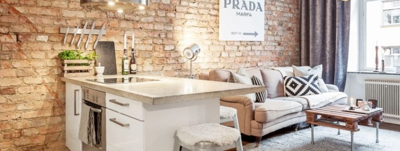 В последнее время барная стойка все чаще используется в интерьере кухни, объединенной с гостиной. Если раньше это было что-то удивительное и непривычное, то сейчас она является незаменимым атрибутом во многих квартирах. Изначально она использовалась лишь как элемент декора и интерьера на Западе, но со временем получила широкое применение и в нашей стране. Основная разница заключается в том, что в странах Америки барная стойка соответствует своему названию и применяется по основному функциональному назначению – приготовление напитков и коктейлей, их распитие. На территории Российской Федерации она больше интересует людей как небольшой обеденный стол, способный вписаться в маленькую кухню. Также стойка часто используется в качестве элемента интерьера, для зонирования пространства и совершенного внешнего вида, но никак не по прямому назначению. В зависимости от места установки барной стойки, можно выделить ее основные виды: Важным нюансом является освещение. Вне зависимости от типа и ви