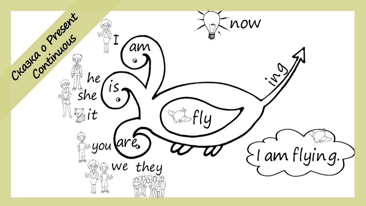The Present Continuous Tense обозначает действие, которое происходит в момент речи, непосредственно сейчас. То есть, действие обозначается в процессе, поэтому это время еще иногда называют Present Progressive Tense. Показатели этого времени: now (сейчас), at the moment ( в данный момент), at this time (в это время), these days ( в эти дни) и т.д. Образование времени Present Continuous «+» В утвердительном предложении смысловой глагол ставится в 1 форму с окончанием -ing, между подлежащим и смысловым глаголом появляется вспомогательный глагол to be в форме настоящего времени — am, is, are. Подлежащее + am / is / are + Глагол + ing I am reading now –Я сейчас читаю We are reading now - Мы сейчас читаем «-» В отрицательном предложении между подлежащим и смысловым глагол