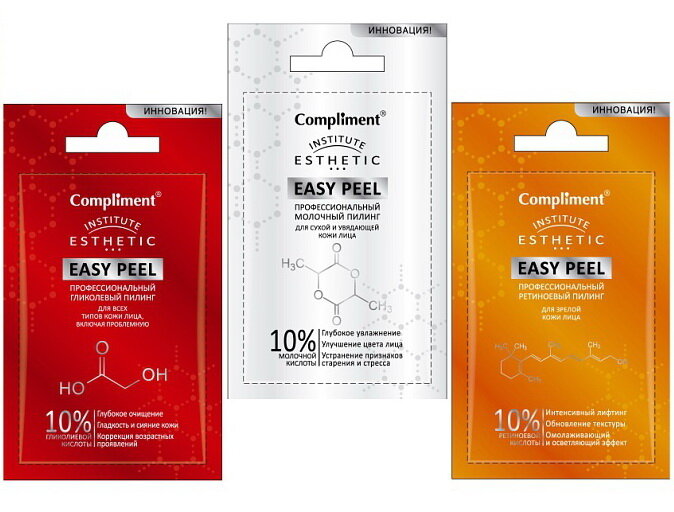 За то время, что на российском косметическом рынке свободно существуют иностранные бренды с громкими названиями, рядовой покупатель практически перестал обращать внимание на продукцию отечественных производителей. А зря! В подборке - пятерка НЕБАНАЛЬНЫХ, дешевых и очень классных средств от российских косметических компаний. 1. Пилинги-саше Compliment Easy Peel Линейка кислотных пилингов для домашнего использования в одноразовых (ну ладно, двухразовых) пакетиках-саше - это чуть ли не самое значимое из моих открытий на полках магазинов у дома. Пилинги выпускаются подмосковной компанией "Стелла", приятны и легки в использовании и крайне! бюджетны: цена одного пакета колеблется в пределах 30-40 рублей. Все по классике: наносим на сухое лицо, избегая областей вокруг глаз и губ. Кожу вокруг глаз лучше намазать кремом, а губы - бальзамом, чтобы избежать неприятных ощущений при снятии пилинга. Держим 10-15 минут и смываем теплой водой. Результат мало чем уступает более дорогим аналогам: лиц