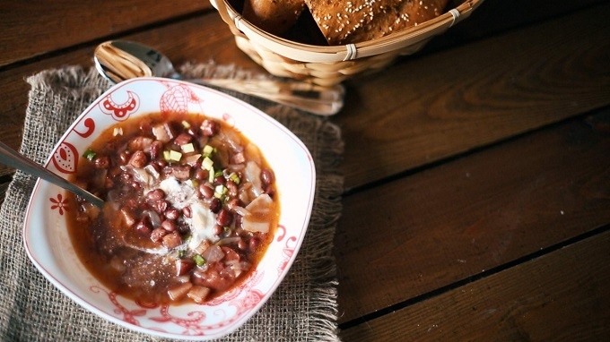 Изумительный супчик получился) С очень насыщенным вкусом и ароматом. Идеально для обеда и разнообразия в меню. Попробуйте) Понадобится: 250 грамм фасоли по 300 грамм копченой грудинки и охотничьих колбасок половина маленького кочана капусты 2 зуб. чеснока 1 ч. л. молотой паприки соль черный перец по вкусу Приготовление: Фасоль нужно предварительно замочить, лучше всего на ночь. Затем хорошо промыть, залить двумя литрами воды и отварить в течении 40 минут. Если вы решились сварить супчик спонтанно и у вас нет времени на приготовление фасоли, возьмите баночку консервированной. Я беру в собственном соку, просто промываю её в дуршлаге и использую. Грудинку нужно порезать кубиками, колбаски - кружочками, капусту мелко нарубить, чеснок очистить и мелко порезать. После того, как фасоль покипела 40 минут, добавьте к ней копчености и паприку, пусть покипит 10 минут. Далее добавить капусту и чеснок, посолить и поперчить по вкусу, перемешать и варить ещё 15 минут до готовности. Всё, отличный сыт