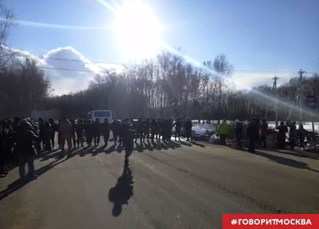 Речь идёт о полигоне ТБО «Воловичи». Активисты требовали перестать ввозить на него мусор из других районов Подмосковья и Москвы. Полицейские, прибывшие на место, через мегафон обращаются к гражданам с требованием навести порядок и называют их действия незаконными. Как рассказал «Говорит Москва» житель подмосковной Коломны Андрей Шанин, протестующие дежурят у свалки уже четвёртый день. «Наши коломенские машины нормально проезжают на полигон. Но людей теснят. Пригнали Росгвардию. Несколько человек, по слухам, забрали. Здесь была организована раздача еды. Баррикад тут не было, просто люди еду приносили, раскладывали. Вот это всё ломают, убирают.