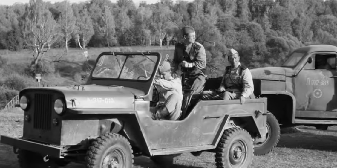Возле сарая на пеньке сидел человек в форме красноармейца, на коленях которого лежал ППШ. Он то и дело поворачивался в сторону амбара и что-то, в усмешке скаля зубы, говорил.