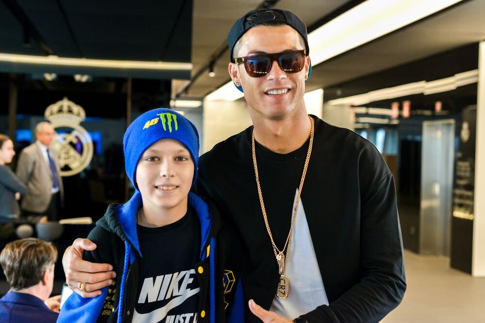 Открывал академию с Шевченко, принимал подарок от Ломаченко и фоткался с Милевским. Встретился с онкобольным мальчиком из Украины Полтора года назад португалец исполнил мечту 13-летнего Юры Штрикуля, страдающего от рака крови. Мальчик побывал на матче «Атлетико» – «Реал». Также его гостеприимно приняли на базе королевского клуба и там перед тренировкой он встретился с Криштиану Роналду, и с Лукой Модричем. А организовать эту встречу помог капитан донецкого «Шахтера» Дарио Срна. Открывал с Шевченко футбольную академию в Тбилиси Роналду и Андрей Николаевич открыли в столице Грузии футбольную академию имени легендарного Виталия Дараселия. «Мы с Кахой прошлое поколение, которое достигло чего-то, – рассказывал Шевченко. – Криштиану – представитель поколения сегодняшнего. Один из лучших действующих игроков. У любого ребенка, смотрящего на него, есть стимул, цель, которую он будет стремиться достичь. И тренироваться ради определенных успехов». Обменялся футболками с Анной Музычук В прошлом ме