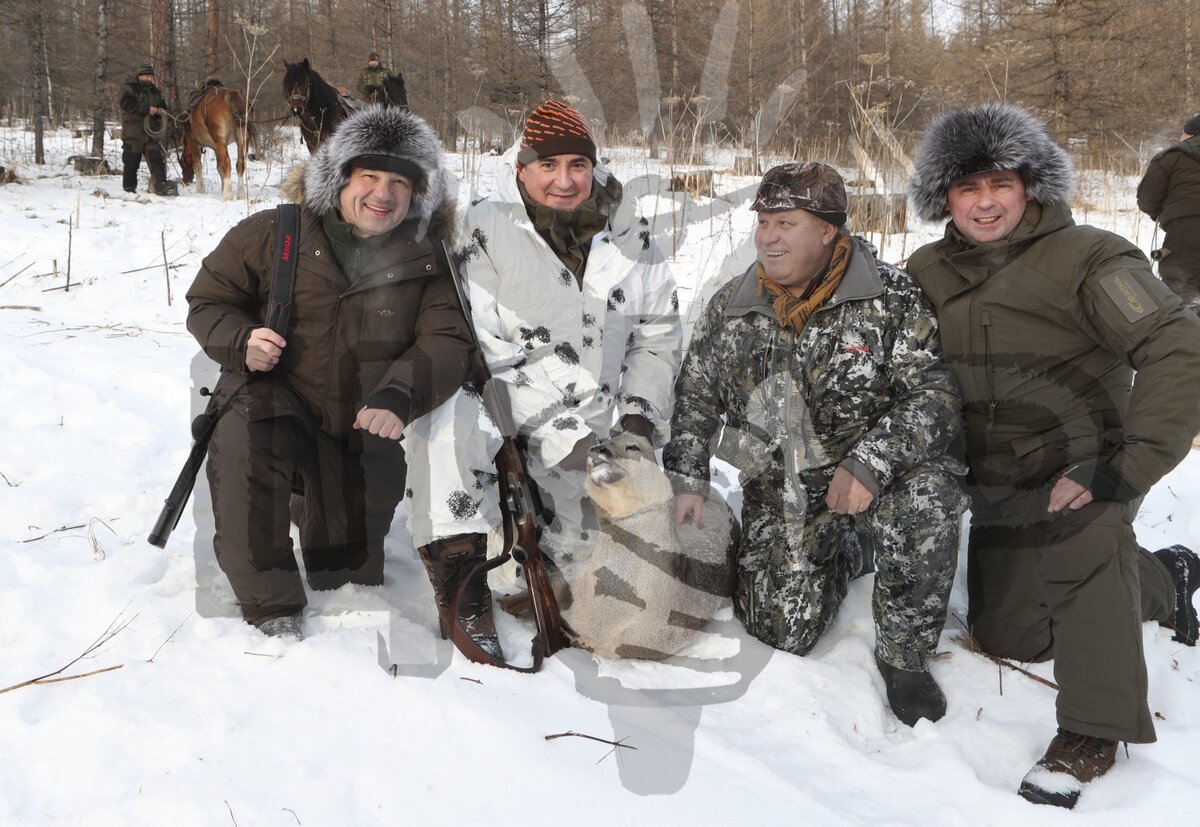 Гостей на внедорожниках доставили на место, где их ожидали подзамерзшие егеря. Там охотники разделились и стали ждать, когда погонщики выведут на них оленей. Дюмин составил пару с Андреем Воробьевым — оба дружат не первый год и вместе играют в Ночной хоккейной лиге: тульский губернатор стоит на воротах, а подмосковный — нападающий.