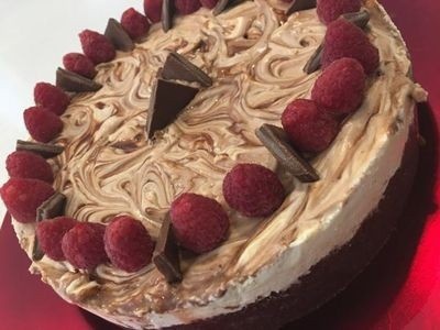 - ШАГ 8Охладите немного, а затем добавить ложку мяты и сливочного сыра. Используйте заднюю часть ложки, чтобы закрутить мятый монт в смесь сливочного сыра, чтобы получить эффект мрамора.