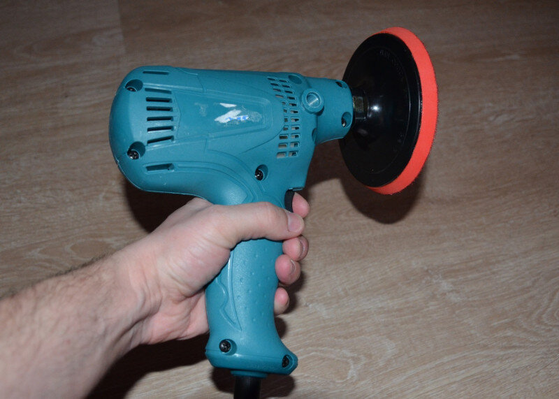 Присылает китаец это добро в коробке. У меня насадка на 125 мм с липучкой плюс мягка насадка для полирования. В лоте есть еще вариант с поролоном — можно полировать воском автомобиль. Только не переусердствуйте с нажимом — тут нужно попробовать и привыкнуть.
