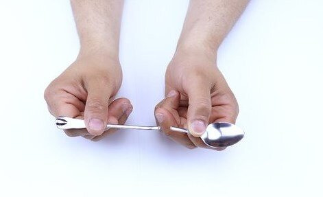 В следующий раз, когда окажетесь на плохом свидании или попросту закончатся темы для разговора, возьмите ложку, чтобы произвести впечатление на своих собеседников забавным трюком. Берем ложку (1), кладем ее на стол, она должна находится в горизонтальном положении. Держите ложку обеими руками так, чтобы зритель видел только переднюю часть прибора (2). При этом охватывать, так называемую, ручку или рукоятку ложки не нужно. Представьте, что сгибаете ложку, в то время как на самом деле просто двигаете руками, поднимая их вверх и воображая будто со всей силы гнете предмет (3). Это будет выглядеть так словно вы, действительно, согнули столовую серебреную ложку. Далее сделайте манипуляционные движения будто обратно выгибаете предмет, все также оставляя на виду лишь его переднюю часть. Затем немного встряхните прибор, продемонстрировав свою могучую силу, с помощью которой якобы восстановили ложку (4).