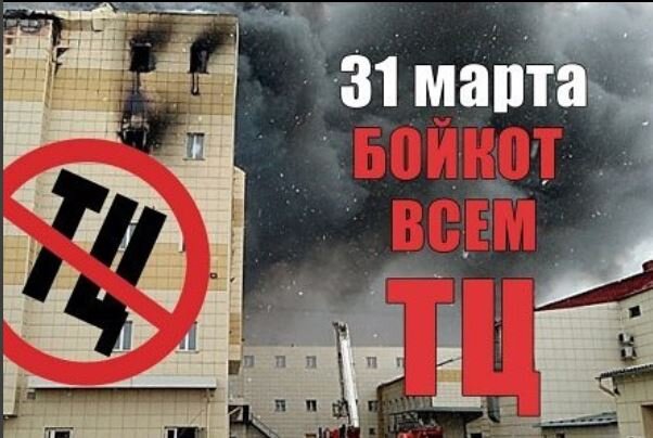 В социальных сетях и мессенджерах набирает обороты новый тренд "Бойкот всем ТЦ", предлагается в субботу игнорировать все торговые центры в стране, ничего там не покупать, даже не заходить, чтобы ударить по ним рублем. Чтобы они повышали уровень безопасности. Задумка хорошая, я тоже хочу чувствовать себя в безопасности и в торговом центре, и в общественном транспорте, и дома. Но кого следует к этому призывать в первую очередь? На мой взгляд - контролирующие органы - МЧС, городские власти, Роспортебнадзор и т.д. К уголовной отвественности в Кемерово привлекли сотрудников ТЦ, да они несут ответственность. А как быть с МЧС по Кемерово, а как быть с Тулеевым, ответ государства - НИКАК. Ну подумаешь не проверяли ТЦ, ну подумаешь губернатор не контролирует ситуацию в региона, даже приехать на место ЧП не захотел, Путин приехал, а тот нет... Надо власть заставлять исполнять свои обязанности, а не байковать ТЦ. Это мое мнение, впрочем оно не отменяет Вашего. Берегите себя и родных!