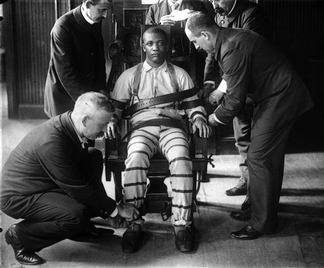 Электрический стул был изобретен 115 лет назад, став еще одним символом США. Дантист из города Буффало, штат Нью-Йорк, по имени Альберт Саутвик думал, что электричество может быть использовано в его медицинской практике как обезболивающее. Однажды Саутвик увидел, как один из жителей Буффало прикоснулся к оголенным проводам электрогенератора на городской электростанции и умер, как подумал Саутвик, почти мгновенно и безболезненно. Этот случай натолкнул его на мысль, что казнь с использованием электричества может заменить повешение как более гуманное и быстрое наказание. В 1882 году Саутвик начал эксперименты над животными, публикуя свои результаты в научных газетах. Затем Саутвик показал результаты своему влиятельному другу, сенатору Дэвиду Макмиллану. Саутвик заявлял, что главным преимуществом казни с применением электричества является то, что она безболезненна и быстротечна. В 1886 году принимается «Закон о создании комиссии для исследования и представления заключения о наиболее гума