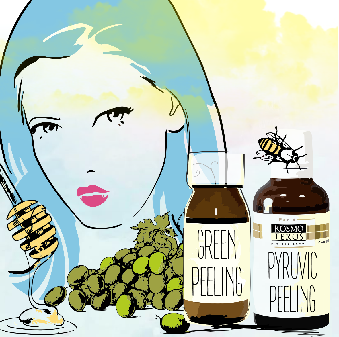 Пируваты – органические соединения, встречающиеся в меде и фруктах. Присутствует пировиноградная кислота и в организме человека: она является конечным продуктом расщепления молекул глюкозы в процессе гликолиза и предшественницей молочной кислоты. Пилинги на основе пируватов оказывают, прежде всего, отшелушивающее действие. Кислота разрыхляет роговой слой, способствует отделению отмерших эпителиальных клеток. Проникая вглубь кожи, она стимулирует клеточное обновление.