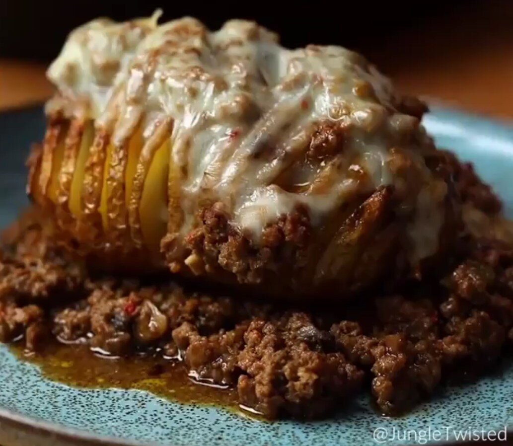 В начинку также входят грибы и сладкий перец. Очень вкусный рецепт полноценного блюда! Вкусно готовим мясо с овощами и подаем с картошкой-гармошкой в шубке из тающего сыра. В коротком видео (меньше минуты) вы увидите все этапы приготовления и конечный результат, а после него - текстовую запись всех ингредиентов и процесс. Картофель, запеченный с мясом и сыром Ингредиенты: Крупный картофель Оливковое масло - 1/2 стакана + 3 ст.л Соль, перец Фарш - 600 гр Лук репчатый - 1/2 стакана Сладкий перец - 3 шт, нарезать Грибы - 1 стакан Чеснок - 3 зубчика Бульон или вода - 2 стакана Молоко - 1 стакан Сыр пластинами Приготовление: 1. На картофеле сделать глубокие надрезы "гармошкой" 2. Смазать оливковым маслом, выложить на форму, посолить и поперчить 3. Выпекать картофель 1 час при температуре 180 гр 4. Обжарить фарш 5. Лук обжарить до прозрачности на сковороде, добавить к нему сладкий перец, грибы и чеснок, немного пожарить 6. Добавить к овощной смеси фарш, влить воду или бульон и молоко, по