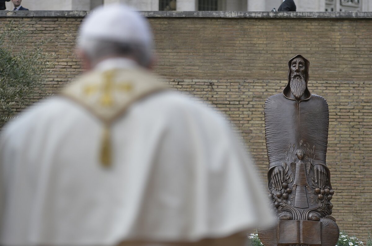В садах Ватикана 5 мая состоялось открытие памятника Св.Григору Нарекаци – средневековому армянскому поэту, философу, богослову. Нарекаци причислен Католической церковью к сомну Учителей Вселенской церкви прежде всего как автор глубочайшего и всеохватного произведения – «Книги скорбных песнопений», переведенных полностью или фрагментами на множество языков. Одним из присутствовавших на этой, без сомнения, важной исторической церемонии был автор памятника, народный художник Армении Давид Ереванци (Бабаян). И, конечно, самым счастливым, ведь если для всех это знаковое открытие, для него – удачное завершение труднейшей работы. К тому же далеко не каждый скульптор наших дней может увидеть свое произведение в Ватикане.