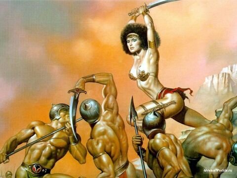 P.S. Легенды об воинствующих племенах женщин существуют у многих народов мира. Это либо предания об существовавших на самом деле племенах, либо распространённые античные мифы, обросшие новыми подробностями. И у меня лично большое подозрение, что, во-первых, амазонки были не настолько кровожадными (греки могли распространять о них ложную информацию), а во–вторых, они могли быть также и не столь изящными, как на изображениях, дошедших до нас из древности, или созданных в наше время. Огромные физические нагрузки в битвах и ранние тренировки (с 10-12 лет) делали их тела более мускулистыми, и менее «формистыми». Вспомните современных профессиональных спортсменок.