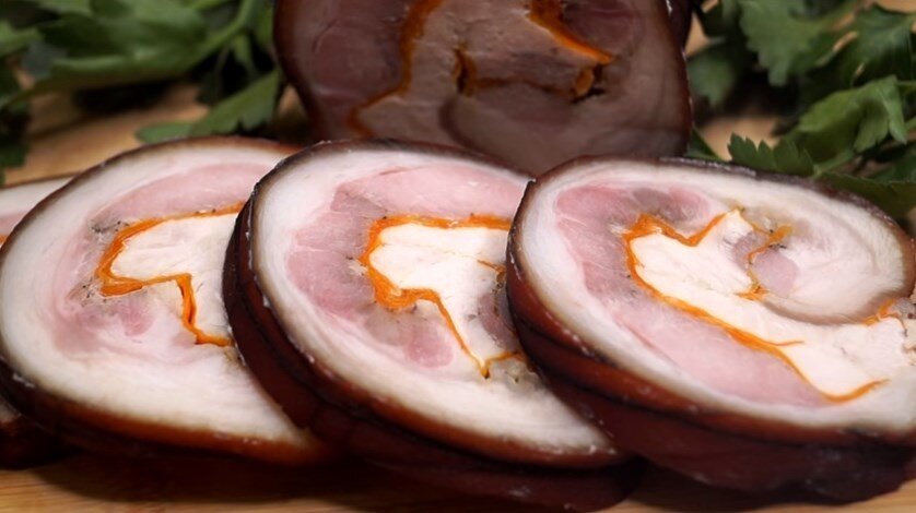 Рулет из свиной рульки с куриной грудкой и морковью. Получается очень аппетитный, ароматный, сочный. Так как Рулька стоит не дорого, он еще и бюджетный. Вкус достойный, Его обязательно оценят Ваши родные. ИНГРЕДИЕНТЫ Свиная Рулька – 1-1,5 кг. Куриная грудка – 100-150 гр. Чеснок – 2 зуб. Перец – по вкусу Соль – 1/2ч.л. Для отвара: Вода – 3л. Луковица – 4 шт. Морковь – 1 шт. Лавровый лист – 2 шт. Перец горошком – 6-8 шт. Соль – 3 ст.л. Источник видео https://youtu.be/ttwJ8Z-qtYE Источник видео Кулинарный Блог Калниной Натальи Подписывайтесь на мой канал на youtube Калнина Наталья, чтобы не пропустить новые видео, они выходят каждый день! Подписывайтесь на мой канал Яндекс Дзен, ставьте палец вверх 👍 чтобы данный рецепт всегда был под рукой! Желаю вам приятного аппетита! ??? Читайте также в моем блоге другие подборки: Их сколько не делай, всегда мало. Сметаются со стола со скоростью звука! Быстрые пирожки! Съедаются молниеносно! Роскошный Торт за 5 минут. Безумно вкусный! Вкусне