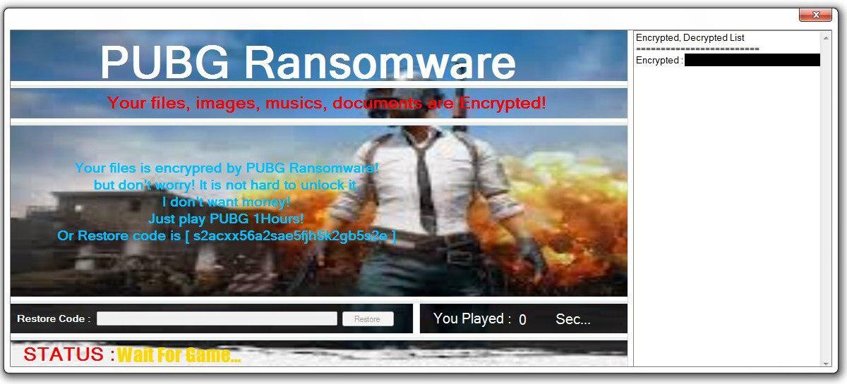 Какие то авантюристы написали вирус-троян, который шифрует все файлы на компьютере в формат .PUBG, а для расшифровки предлагает один час поиграть в PUBG. Если Вы сыграте в PlayerUnknown’s Battlegrounds, то он дешифрует пораженные файлы. Остается вопрос, причастна ли компания Bluehole и PUBG Corporation к данному вирусу.