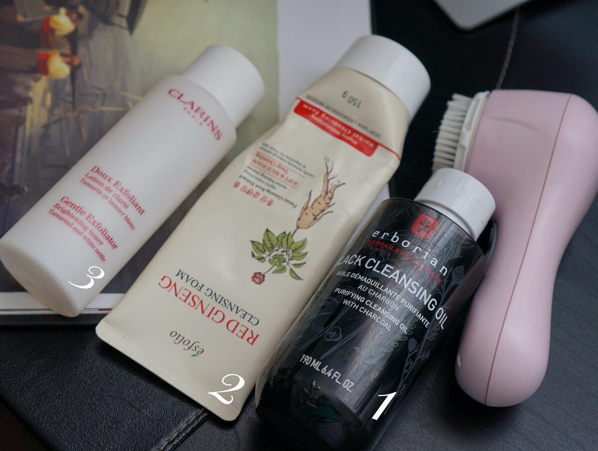 Для телеграм-канала mainbeebeauty Вечером я люблю очищать кожу следующим способом: ПЕРВЫЙ ЭТАП Черное масло Erborian. Люблю конкретно это, но также нравятся гидрофильные масла для демакияжа вообще как категория. Под конец дня они легко "убирают" остатки макияжа, кожного сала и загрязнений с кожи. Они не тянут за собой кожу, а работают деликатно. Снимаю масло я мягким полотенцем, смоченным в теплой воде. Кажется, что полотенце вывело уровень чистоты моих пор на новый уровень! У меня простое махровое для маленьких детишек. ВТОРОЙ ЭТАП А дальше я беру Clarisonic + любую пенку и доочищаю еще минуту - две кожу. Сейчас я предпочитаю пенки полегче, а на фотографии "тяжелая артиллерия" - корейская штуковина с корнем женьшеня, ее полюбят обладатели жирной кожи. ТРЕТИЙ ЭТАП После этого моя кожа чувствует себя очень чистой, очень скрипящей, очень готовой ко сну. И я беру любимый тоник Doux Exfoliant с легкими кислотами (пишут, что на основе фруктовых кислот) и прохожусь по всему лицу и шее, д