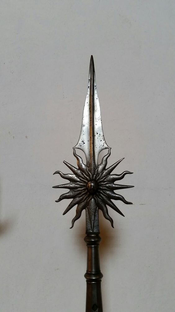 С первого взгляда данное оружие можно идентифицировать как клинок с разной формы крылышками на длинном, доходившем до двух с половиной метров, древке. По сути своей, это копье, но эволюционировавшее. Ведь протазанами (partisane, partizan) не только кололи, но и рубили, разрезали. Характерным отличием протазанов от других древковых оружия являются небольшие крылышки (или ушки). Они были разной формы и величины. Длинные, широко выступающие концы по бокам характерны скорее для рунки. Впервые протазаны появляются на вооружении у швейцарских наемников и немецких ландскнехтов. Подписывайтесь на телеграм-канал - t.me/battlez К сегодняшнему дню сохранились в основном парадные, церемониальные протазаны. Несколько показательных образцов: Уже в XVII веке они становятся оружием телохранителей и гвардейцев. Например, стражники Людовика XIV обзавелись красивыми, роскошными экземплярами, которые, безусловно, стали украшением королевского двора. Попав в Россию, протазан не прошел путь от боевого