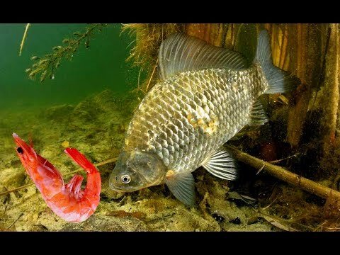 Целая стая карасей набросилась на креветку. Посмотрите это подводное видео. Креветка хорошая наживка оказалась. Можно брать.